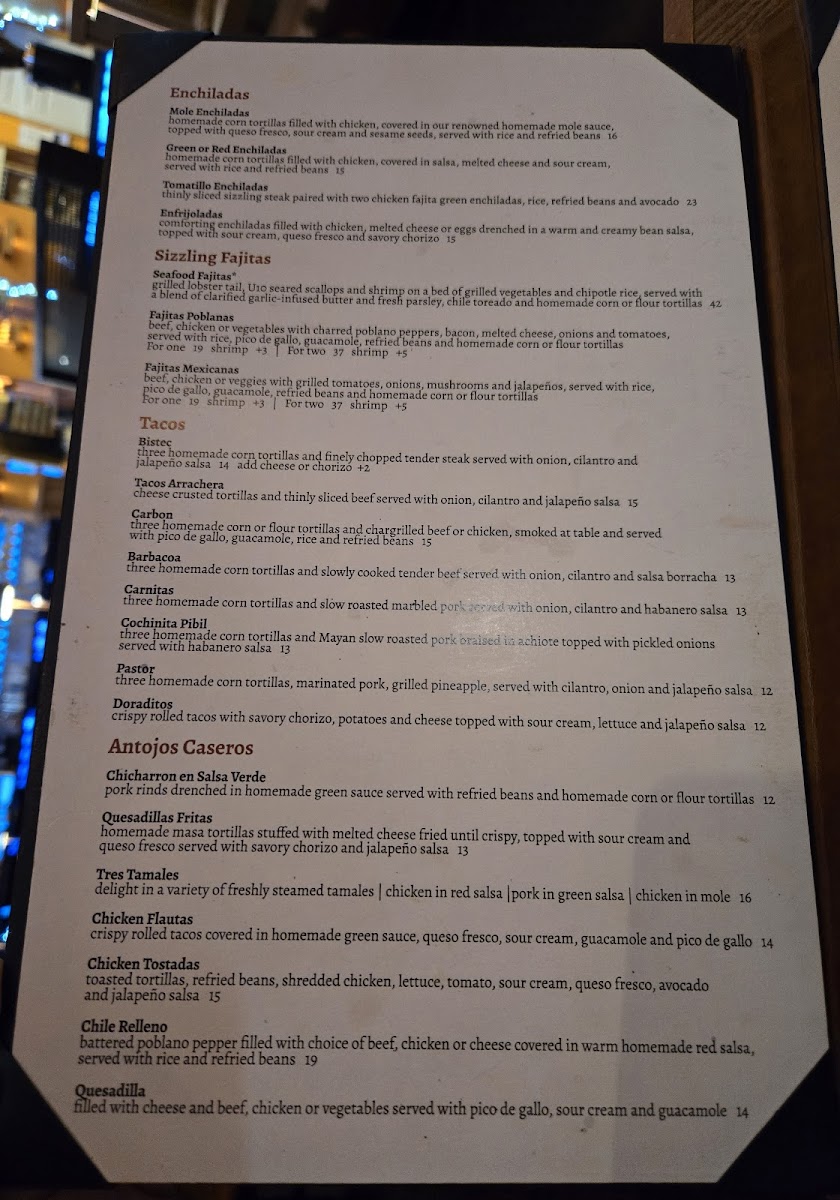 Seafood lovers will relish the Sizzling Seafood Fajitas—a lavish mix featuring lobster tail, prawns, and succulent scallops. The atmosphere is uniquely charming, merging elegance with a casual vibe, ensuring every dining experience is both cozy and refined.